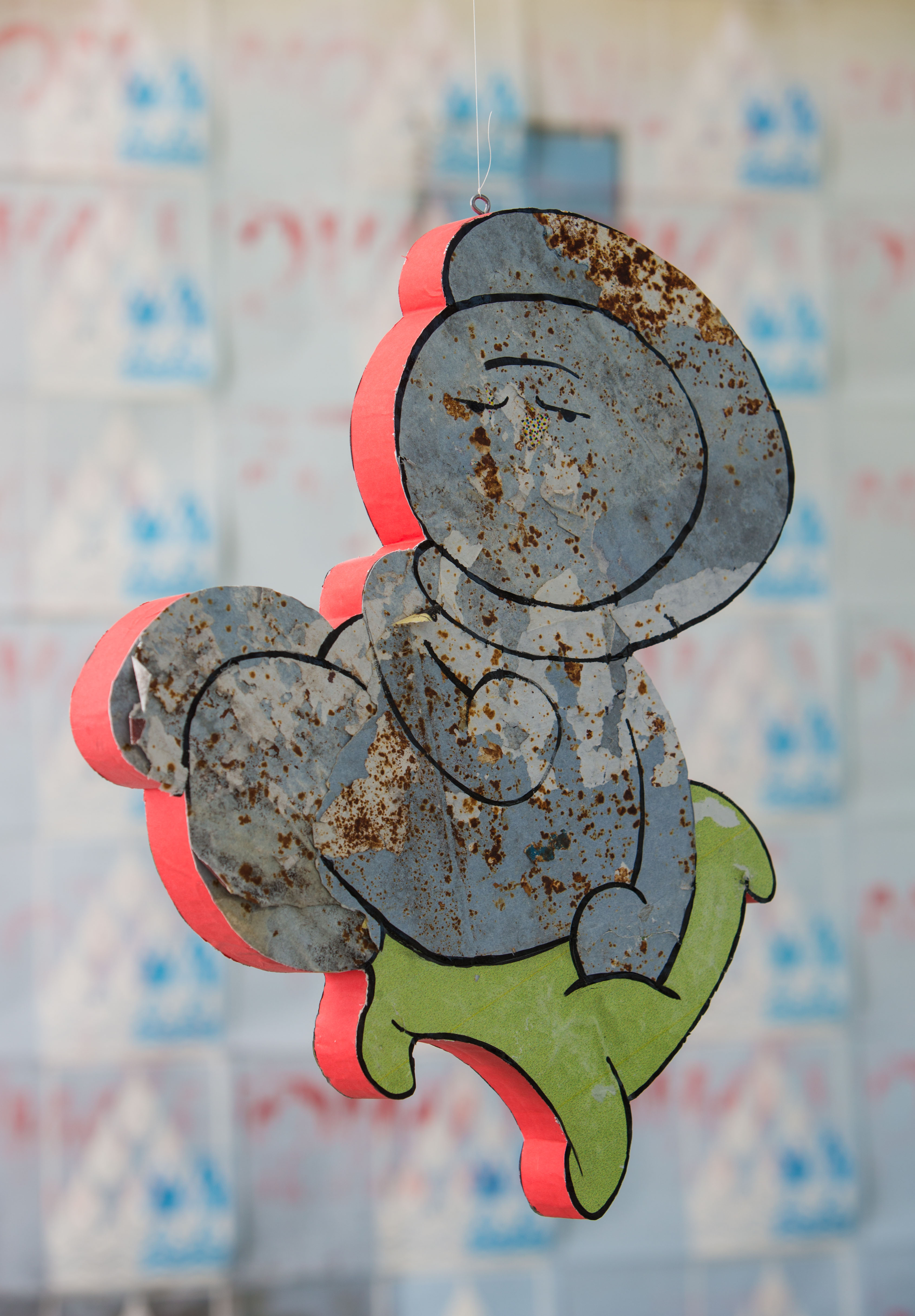 Hanging works works dangle from above sometimes appearing to float, while at other times they are teniously hanging. These works tend to have a single point of origin unlike my work that are more mobile, the mobile works have multiple points of origin.